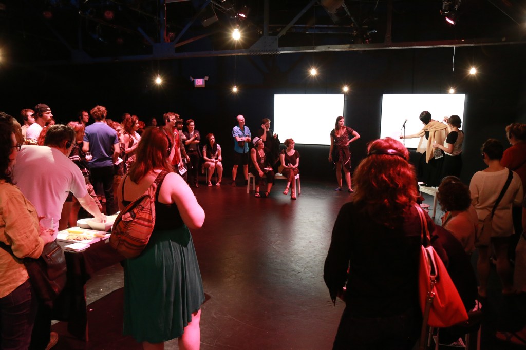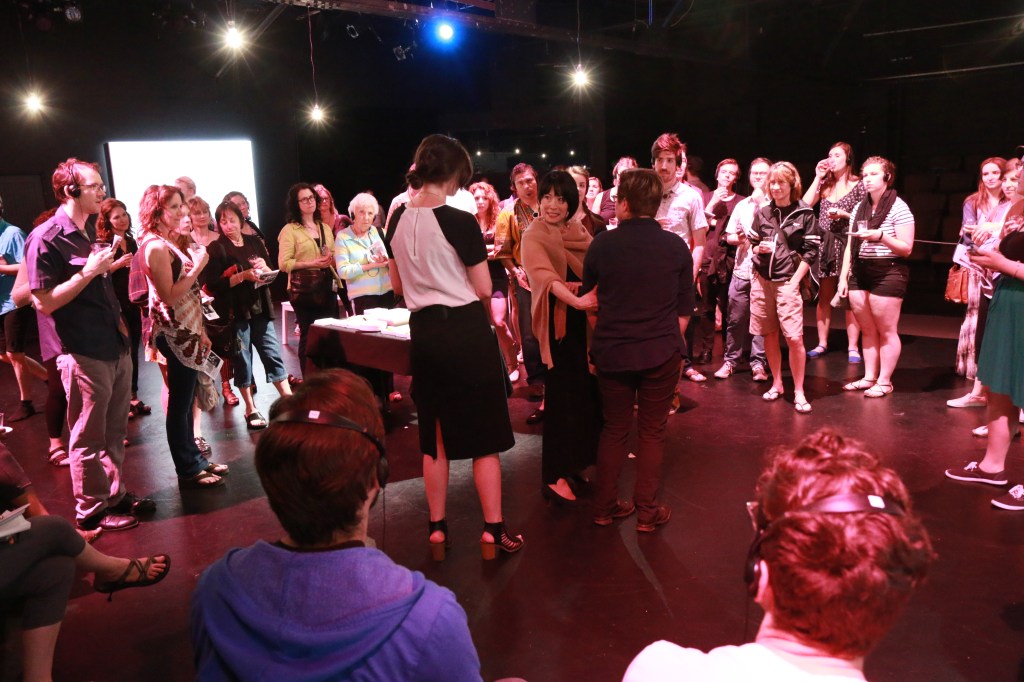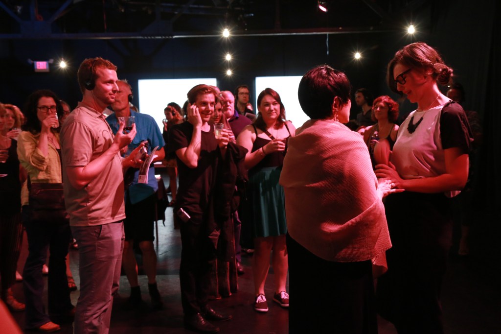 Part party, part installation, part performance – Private Party gives a set of headphones to each audience member which broadcasts the inner lives of a single character in the midst of a gallery opening. Shaking up the relationship between character and audience, Private Party creates a unique theatrical experience that explores both the intimate and public self.