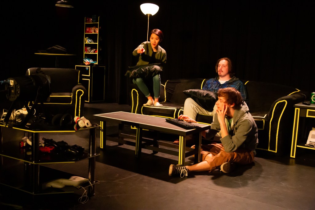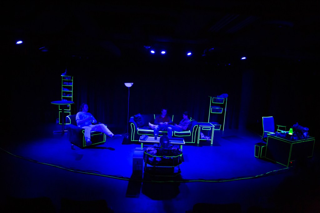 Three twenty-something roommates are glued to their video games. They are masters of the virtual worlds behind the computer screens in their Las Vegas basement. When one of them uses his gaming skills to land a job with the National Security Agency launching actual drones and missiles, online battles begin to have real consequences. Leveling Up is a fresh, contemporary look at how we navigate the blurry line between worlds both virtual and real and what it means to grow up.